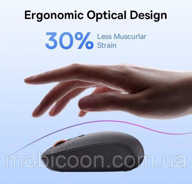 Бездротова миша Baseus F01B з подвійним способом підключення – Bluetooth та радіоканалом 2.4Ghz – є ідеальним поєднанням стилю та функціональності. Ця миша забезпечує зручність та гнучкість у використанні, дозволяючи вам легко перемикатися між двома різними пристроями без необхідності перепідключення.